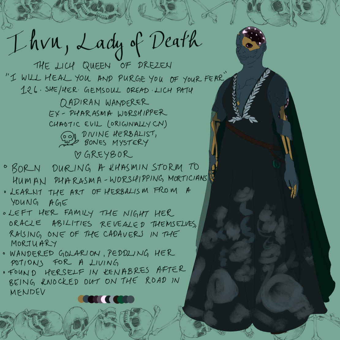 Once the spiritual guide to her village, Yejide relinquished this role after ensuring every refugee from Dordone had a comfortable life in Omoya. Now aimless and without purpose, Yejide spends her life drinking, fucking strangers, and putting her life in mortal danger in order to avoid dealing with her deep seated survivor's guilt. She puts on a carefree, stupid and unassuming persona so that others don't expect much from her, and don't pry into old wounds.